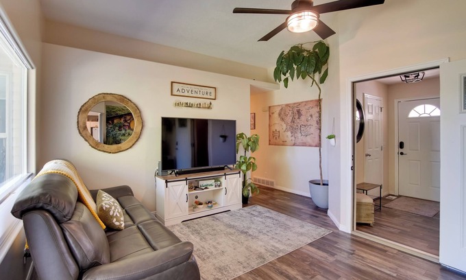 Your next Southern Utah retreat begins at this Cedar City vacation rental! Whether you’re looking to explore Zion National Park, sample downtown eateries, or catch a game at Eccles Coliseum, this 2-bedroom, 1-bath house makes the perfect base for a memorable getaway with family or friends. After each day of adventure, return to ‘Middle Earth’ and enjoy your own personal slice of the Shire in the shared backyard!