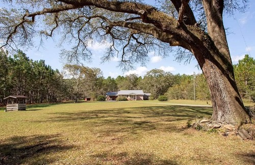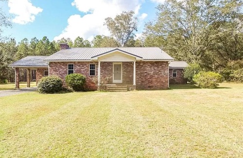 Come stay in our 210 year old cottage that's nestled in the midst of 79 acres with panoramic views of planted pines. This updated adorable 3 bedroom, 2 bath quaint brick cottage is rich with history of Blackshear. The brick exterior of the home was originally on the old Big Z in Blackshear, the wood paneling is over 200 years old and come from an old popular farmhouse, along with many other details. From the majestic oaks and the old pulley-system well in the front yard to the classic red barn in the back, this property seems to take you back in time to the simple "good ol' days!" This home is perfect for someone who wants a taste of nature or loves to stay in homes rich with history. This home will sleep 10 guests comfy and has room for multiple cars, motorhomes, etc. We will consider outdoor or barn weddings, formal or informal gatherings, etc. Please reach out with any inquires you might have!