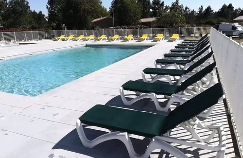 Accommodation: Chalet T3, 30 m2 + terrace (10 m2) 5 beds In the heart of the Médoc in residential park of secure leisure, real haven of peace in the heart of the forest, great calm, relaxing setting with direct access to the wild shores of the lake. Cycle path at the exit of the park. Chalet facing the forest on a plot of 330 m2.The chalet consists of a kitchenette open to the living room (cooking plate, fridge, microwave oven, coffee maker, toaster, vacuum cleaner), a first bedroom with a bunk bed (a double bed at the bottom and a single bed at the top), a second bedroom with a double bed, a bathroom with toilet. The exterior consists of a sheltered wooden terrace of 10m2 facing south with forest table and 4 deckchairs, none facing.Within the residence you will find: * Large swimming pool (17x10m) and paddling pool for small children*Welcome room with terrace facing the swimming pool *Baby football, ping pong table, loan library*Company games, petanque balls*Peanque terrain*Children's garden with swing, slide, sandbox*Great barbecueTime of arrival / Departure: Arrivals will be made at the agency at the 10 Places of the church in Hourtin, the reception will be available from 3pm until 5.30pm.As for the time of departure, it will be set by the agency to optimize the organisation of household services, from 8am to 9am maximum.