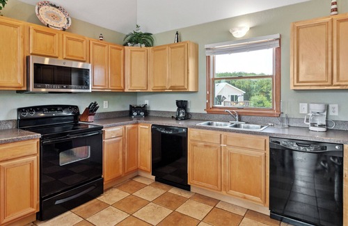 On the Ground Level, enjoy a swim in the large Private Pool* and relax in the warm, bubbly Hot Tub after a day of frolicking in the surf and sand. Pass by the Outdoor Showers that are perfect for rinsing up after enjoying a day in the sand at the Bias Lane Beach Access which is only a 5-minute walk away. Play some Volleyball in the backyard and enjoy the large, grassy yard that's perfect for the kiddos to enjoy as this quiet neighborhood makes it easy to relax in what feels like your own private resort. Cook up something delicious on the Charcoal Grill and be sure to bring plenty of treats for the family pooch, since your dog is welcome to vacation with you at A Spotted Duck!
