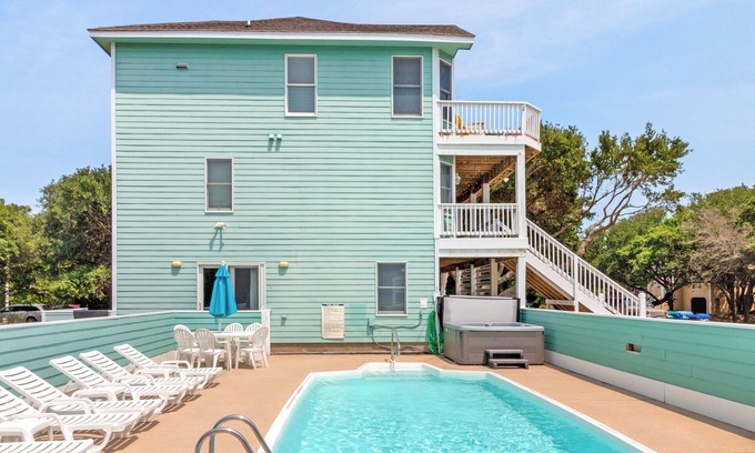 A Spotted Duck is a beautifully decorated, family-friendly home in Bias Shores and just a hop, skip, and a jump away from the beach access leading to the sparkling Atlantic, as well as the kid-friendly Community Recreation Center. The sound-side beach has private parking for Bias Shores guests only and has a lighted walkway leading to the beach and pier. Watch luscious Outer Banks sunsets from the pier or beach or let you favorite four-legged friend splash away in the shallows of the sound. This neighborhood is filled with a variety of adventures, meaning it's sure to delight all members of the family. Enjoy the luxury of your own Private Pool and warm, bubbly Hot Tub after a long day of exploring everything that the Outer Banks has to offer.