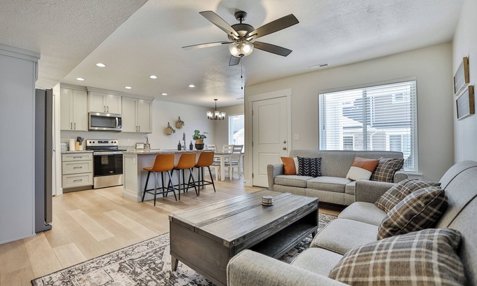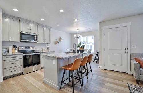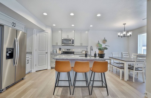 The property features an open concept living/dining/kitchen area that encourages connection among guests, making it perfect for rehearsal dinners or post-wedding brunches. The fully stocked kitchen allows you to prepare delightful meals, while cozy designer bedrooms—featuring high-end mattresses—provide restful retreats after a day of celebration. With three well-appointed bathrooms, ample parking, and the option to rent adjacent units, your group will have everything they need for a seamless wedding experience at 220 - Bear Lake Escapes.