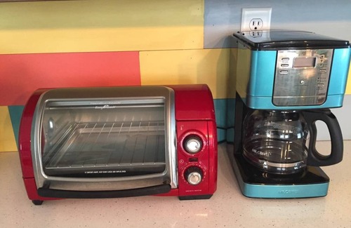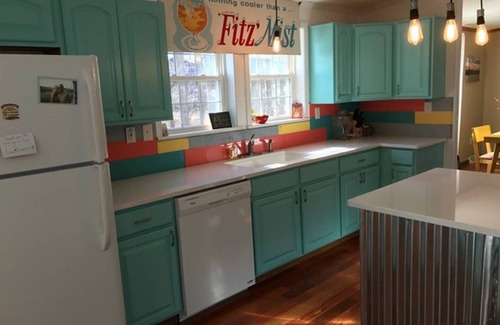 The open floor plan has a large kitchen that opens to a game room on one end and the dining / family room at the other. The vintage style kitchen has everything you might need including full-sized appliances, coffee maker, toaster oven, dishes for 10 , cooking supplies and so much more (if you have specific questions please ask). Just bring your food and drink! Some spices and basic condiments are customarily available.