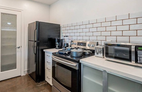 Beautifully remodeled historic home built in 1936! Located in one of the most unique historic districts in Central Phoenix. Short drive to the airport (15 min), downtown area (10 min), many local restaurants, bars, and other things to do. The space is designed with an industrial-retro theme in mind. A very unique blend! There is even a full length wall mural painted by a local artist inside the house representing the 5 C's of Arizona. Please note BACKYARD IS SHARED W/ GUEST HOUSE