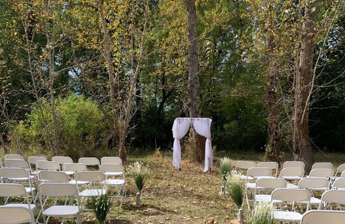 Welcome to the 23 Acre Riverfront bunkhouse “Glamping” glamorous camping in the city of Eagle, your dream destination for an unforgettable wedding celebration. Nestled along the serene banks of the Boise River, this unique venue transforms a rustic setting into a romantic oasis, offering an enchanting backdrop for your special day. With ample space for guests and mesmerizing natural beauty, it’s the perfect choice for couples seeking an extraordinary and memorable experience.