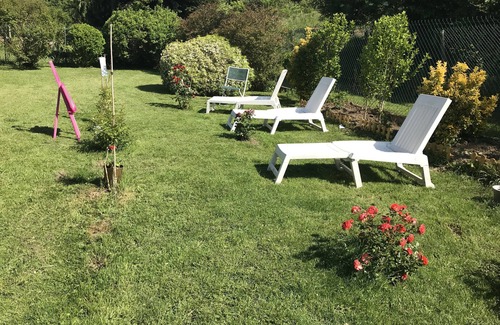 rent in a secure house with a large garden, swing, slide ideal for children.