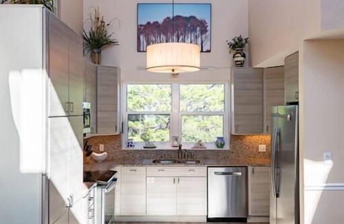 Fully equipped kitchen, Hamilton Beach K-cup + drip coffee maker, induction range, refrigerator with ice maker, microwave, dishwasher, toaster, washer, dryer, gas grill, grill utensils.