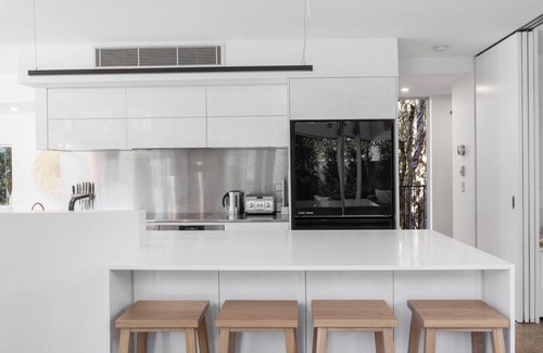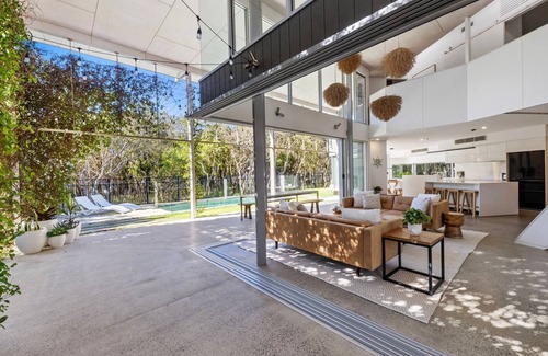 You will relax to the sound of the surf, wide open north facing living spaces and an entertainers kitchen any culinary master would be proud to operate. The food and beverage delivery area is complimented by generous living spaces designed to relax your senses with their wide comfortable seating, lounging and entertaining areas all overlooking the pool with a private back drop of paper bark trees.