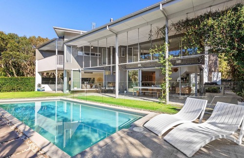 About the property; The epitome of contemporary design, light-filled living, lounging, dining and kitchen spaces are set between walls of sliding glass doors opening to the covered outdoor areas overlooking the pool.