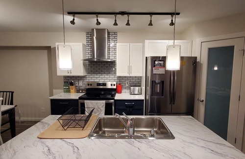 My home is located in a quiet and very safe neighbourhood. Open concept main floor with plenty of windows for sunlight. 75" TV, sofa bed, fully furnished kitchen, dining table, half washroom, Laundry room. 2nd floor3bedrooms ( 1 king bed and 2 queen beds) 2 full bathrooms for booking7 guests.
