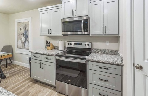 Imagine unwinding in our stylish townhome, where a touch of British charm (celebrating our owners' roots!) meets modern comfort. Our pride and joy is the incredible converted garage game room! This isn't just a bonus room; it's your group's private entertainment complex, ensuring there's always something to do, no matter the weather. Plus, it's fully insulated and climate-controlled for year-round fun. Forget awkward silences – get ready for epic board game battles and friendly ping-pong tournaments!