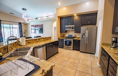 Welcome to my modern completely remodeled 2700 square foot house! Very spacious and accommodates up to 10 people comfortably. 25 foot heatable pool and jacuzzi. Great outdoor BBQ Patio. High speed internet and a basic cable subscription. 4 Bedrooms have their own smart TV's and the living room has a huge smart TV.