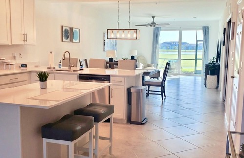 This 2022 ground floor condo with UNLIMITED GOLF during your stay is fully furnished and overlooks the 18th Fairway with beautiful sunset and lake views from your private lanai.