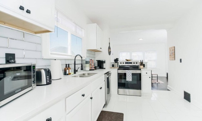 Welcome to our spacious 4-bedroom, 2.5-bathroom Airbnb that sleeps up to 14 guests! Each room is equipped with a 42-inch TV and comfortable beds to ensure a cozy stay. Our full-stocked kitchen and outdoor grill allow you to prepare and enjoy meals with your group. Relax on the side patio while catching up on your favorite shows. Our driveway fits up to 3 cars, making parking a breeze. Book now for a comfortable and enjoyable stay!