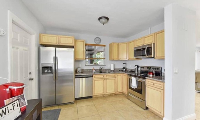 Located in Hollywood, this 3-bedroom, 2-bathroom villa lets you experience it all. Fans of nature and the outdoors will love being 14 minutes by car from Hollywood Beach and 16 minutes from Las Olas Beach. With convenient nearby parking, you'll be ready to make the 8-minute drive to Aventura Mall or the 11-minute drive to Port Everglades. If you're looking to expand your horizons and see other nearby locales, you can catch a train at Hollywood Station, a short 9-minute walk away.