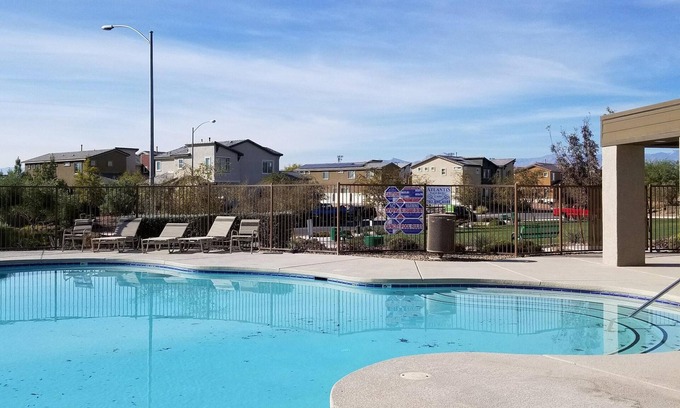 2 Bed 2 Bath house with big open floor plan. Great North Las Vegas neighborhood between Aliente and the Speedway near the 215 and I15 freeway. 15 minutes to Fremont Experience, 20 minutes from the strip, 30-45 minutes from McCarran International Airport. 15 Minutes to Nellis AFB There is a community swimming pool. The owner keeps a room available for themselves when they come to town.