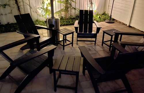 - Private Outdoor Space: Enjoy a generous 400 sq ft private courtyard complete with contemporary Polywood Adirondack chairs, a natural gas Weber BBQ, 6-seat dining table, and a cozy fire pit for evening gatherings.