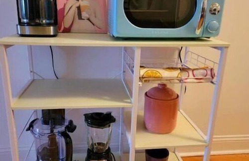 The apartment is the entire first floor of a wonderful 3-storey home. It has front-facing living room with large bay window, spacious kitchen, a tropical-themed full bathroom, 2 bedrooms with queen size beds (including one with a private entrance onto the rear patio deck and a working space), and a full sized office/den. Amenities include a large, brand new 65" smart TV in the living room, 50" smart TV in the main bedroom, WiFi, streaming services (Netflix, HBO Max, Disney), fully equipped kitchen, dining table with room for 6, en-suite washer + dryer, 2 work areas with desks and monitors, BBQ, smart locks for access. Backyard is shared with owner. Dogs under 30 lbs are allowed.