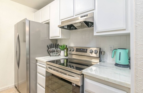 Our fully equipped kitchen invites you to whip up delicious meals during your stay. Whether it's a quick breakfast or a gourmet dinner, you'll find everything you need at your fingertips. And for your convenience, feel free to use the washer and dryer during your stay.