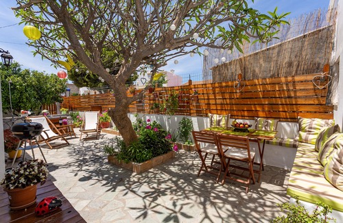 The family-run house is surrounded by its own well-kept garden with citrus trees, roses and Mediterranean herbs and a patio of 70 sqm, where you can relax and enjoy in your privacy the beautiful garden, either in the shade of the trees or in the sun, using the sun beds provided. You can also enjoy your breakfast and meals in the furnished, stone-paved garden terrace, where also some play facilities for children are provided.