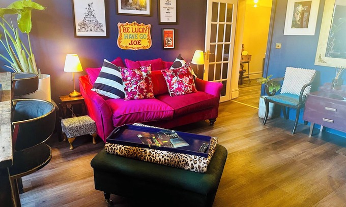 🏖 Stay in this funky, cozy 2- bedroom 2- shower room basement apartment right across from the beach and pier! Bursting with colour and personality, it’s perfect for couples or friends. Enjoy a comfy lounge, fully equipped kitchenette, and walkable access to bars, restaurants, shops, and the sea. Retro charm meets seaside vibes in a central location that’s ideal for relaxing or exploring. A unique, fun stay by the coast awaits!