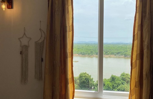 Welcome to our Barcelona-themed 2 BHK lake view apartment in Chennai! Perfect for families, couples, or business travelers. Enjoy stunning lake views from the living room and bedrooms. Fully furnished with rustic wood furniture and all amenities including a cozy living area, equipped kitchen, oven, washing machine and two air-conditioned bedrooms with wood accents. High cleanliness standards with fresh bed sheets, toiletries, and towels. Prime location close to many malls, companies and beaches.