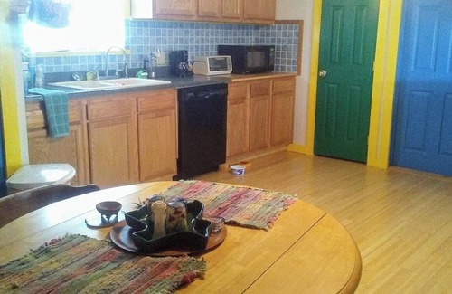 Sunshine's Zen bed and breakfast. 2 bedroom 1 bath house sleeps 4 people comfortably to 6 people with two sleeping on the couch, large kitchen and living room in this nicely decorated home with unique artwork and nick nacks throughout the house. Large 8' x 12' mineral hot springs shared with everyone staying here (SORRY MINERAL HOT SPRINGS IS NOT WORKING DISCOUNTES APPLIED).