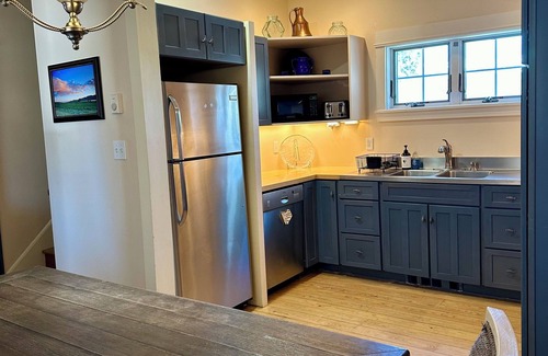 A cozy & beautifully updated dog-friendly space, The Pine House is the perfect space for a weekend or extended stay at Westcliffe Suites! Offering many of the amenities of home, there is a full kitchen, washer/dryer and two private bedrooms (king & queen) and bathrooms with beautiful mountain views. You will enjoy the sitting area on the porch, a shared grill and fire pit and easy walking distance to all the shops, parks and restaurants in downtown Westcliffe.