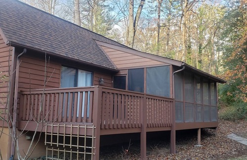While staying in my home, you can experience all that Asheville, Hendersonville and the surrounding area has to offer in a clean, comfortable and welcoming environment. The home is located minutes away from the Airport, Agriculture Center, shopping, restaurants and breweries. The bedrooms each have queen pillow top mattresses. One bath has a walk in shower and the other a claw foot tub for your soaking pleasure. The kitchen has stainless appliances including a dishwasher. You will have all you need to enjoy the local farmer's markets when not taking advantage of the many wonderful restaurants and breweries in the area. There are hardwood floors throughout the home. A screen porch will invite you in good weather. There is a garage for unloading if the weather is not cooperating. There is Wifi, cable TV , and a washer and dryer.