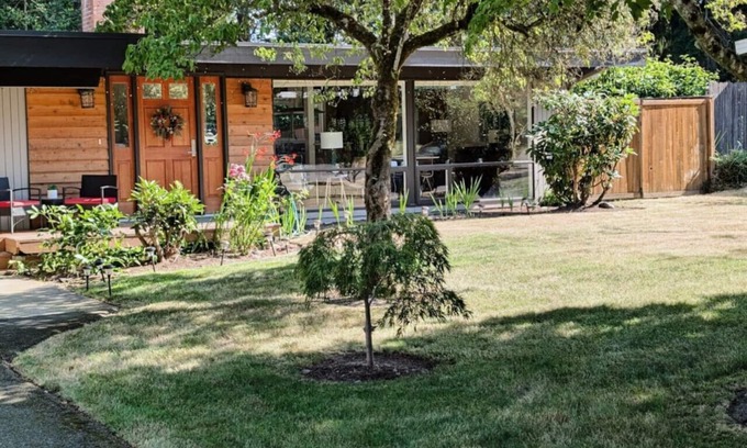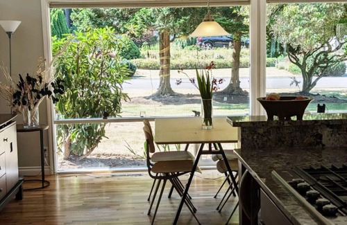 Welcome to Kirkland Bridle Trails 2BR 2BA, blending modernity and tranquility in wooded landscapes. Just a 10-minute walk from Bridle Trails State Park and 12 minutes from Marina Park Beach, it features a modern design with glass walls and a private garden. Located near tech hubs, it's 9 minutes from Microsoft and 4 minutes from Google, offering a balanced living experience.