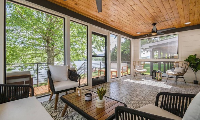 Discover your cozy oasis in the heart of Hiawassee, Georgia! Our retreat rests in a safe cove on nearly 3 acres, boasting over 600 feet of shoreline with access to Lake Chatuge. Just minutes away, you'll find Ingles, downtown Hiawassee, Bell Mountain, Brasstown Bald, the Georgia Mountain Fairgrounds, and a variety of top-notch dining options. Whether your journey is for business or leisure, our cabin serves as your perfect home away from home. Our modern, 2-bedroom, 2.5-bathroom home provides the ideal Lake Chatuge base. With stylish decor and all essential amenities, you'll relish returning to our comfortable retreat. The open-concept living and dining area invites you to savor meals with friends or unwind on the couch after exploring the city. Our fully equipped kitchen facilitates culinary adventures, while King beds in the cozy bedrooms promise restful nights. We have High-speed Wi-Fi to keep you connected as well as a washer & dryer, Roku Tvs & tons of amenities.