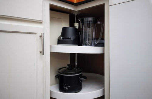 Fully equipped kitchen with modern appliances & dining essentials