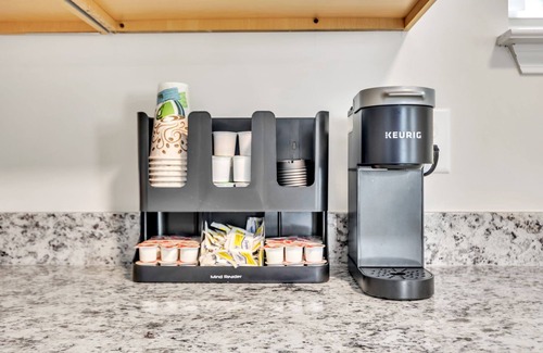 Discover Beverly North, a modern and warm 2BR/2BA upstairs condo in Greer, offering the ultimate blend of comfort and style. Please note that guests must be able to climb stairs. Enjoy 2 designated parking spaces and step into the open concept living area, featuring a fully stocked kitchen with all the essentials for your culinary creations. Dine at the spacious table with seating for 6, or relax in the inviting living room, furnished with a couch, armchairs, and a smart TV for streaming (no cable).