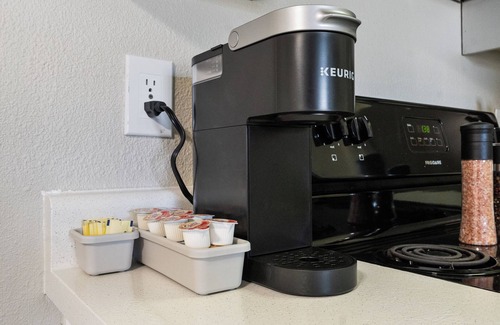 - You can whip up meals in the fully equipped kitchen with oven, stove, microwave, fridge, kettle, K-Cup coffee maker, coffees, teas, etc