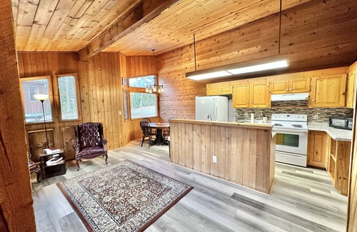 Serene and peaceful cabin surrounded by nature trees and views will give you the urge to unwind and relax. Whether you want to stay indoors or go out for a walk around the 67-acre property the views and nature is what is seen as far as your sight can go. The cabin has big windows to expose as much of view as it possibly can. The doors lead you to a wraparound deck to enjoy the peaceful surrounding.