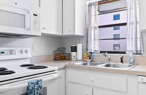 Inside this spacious retreat, soothing neutral tones promote peace and tranquility, allowing you to fully relax and recharge among the comfortable, contemporary furnishings. Sink into plush living room sofa and armchair seating while you catch up on episodes of your favorite shows on the smart TV. A sliding door is all that separates you from the picturesque outdoors, where the balcony overlooks the pool and supplies a fresh ocean breeze to flow freely through the home. Savor your meals while joined together at the dining room table with seating for 6, conveniently steps away from the kitchen. Speaking of the kitchen, you’ll find it fully equipped and ready to assist in all of your mealtime endeavors, with ample counterspace and cabinetry for preparation and storage.