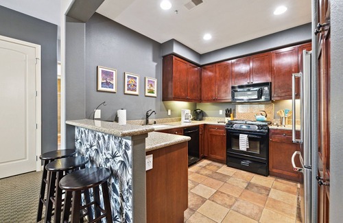 Your stay at this villa is complemented by top-notch amenities including access to 23 saltwater pools and spas, a state-of-the-art fitness center, and beautifully designed outdoor spaces perfect for relaxation or small gatherings. Each king suite features private balconies that overlook the lush landscape, and the open-concept living area is ideal for entertaining. With a fully equipped chef’s kitchen, dining area for six, and charming outdoor seating, hosting pre-wedding brunches or intimate dinners is effortless. Additionally, the villa includes conveniences like high-speed WiFi, flat-screen TVs, and laundry facilities, ensuring you have everything you need to make your stay comfortable.