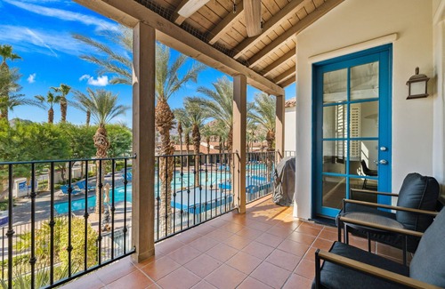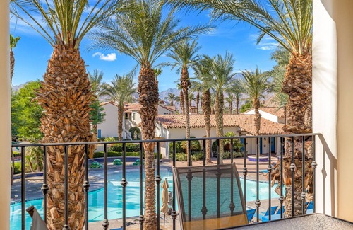 Welcome to the stunning 2BR Villa By Main Pool And Clubhouse @ Legacy Villas #065308, your ideal wedding accommodation nestled in the heart of La Quinta, California. This beautiful upstairs villa offers breathtaking views of the main pool and clubhouse area, making it a picturesque setting for you and your guests. The spacious layout and luxurious amenities provide a romantic atmosphere that enhances your wedding experience, while the proximity to key facilities adds convenience for wedding festivities.