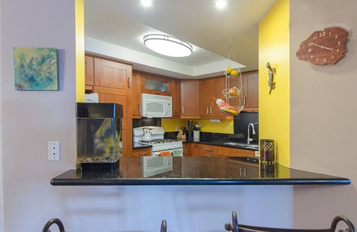 Spacious 2BR/1.5 bath condo in complex with lots of amenities, including pool, tennis and pickleball courts, hot tubs, gym, and 24-hour security. A well-equipped kitchen is perfect for gourmands.