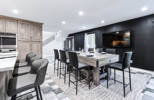Luxurious 4-Bedroom Retreat with Pool, Game Room & Upscale Amenities Key Features: Two Master Suites (Downstairs): Plush king-size beds Upscale en-suite bathrooms Upstairs Bedrooms: Bedroom 1: Queen bed and bunk bed with two twin mattresses Bedroom 2: Queen bed Spacious hallway with mirrors for photo-taking and extra space to get ready Large shared bathroom Game Room: Pool table Ping pong table Arcade games Chic Living Room (Downstairs): Large TV for watching Cozy fireplace Modern, comfortable seating Fully Equipped Kitchen: Large island Stainless steel refrigerator Double ovens Gas range Deep sink Pool & Oversized Hot Tub: Relax in the pool or soak in the hot tub, with lounge chairs and shaded umbrellas in the beautifully landscaped backyard. Pool heating optional for an additional fee. Plenty of lounge space and seating around the pool Outdoor Sports Court: Basketball Pickleball