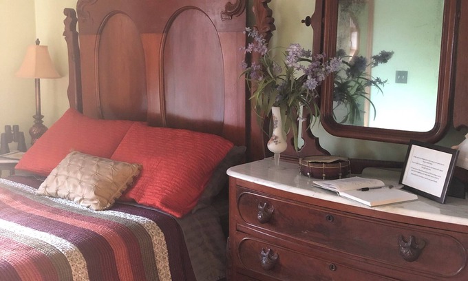 Enjoy a peaceful stay at this bed & breakfast in Milford. The room features a full bed, perfect for a comfortable night's sleep with an attached bath. With amenities like an iron, hair dryer, AC, WiFi, and heating, guests will have everything they need for a relaxing stay. The bathroom comes equipped with a hair dryer as well. Come experience the tremendous hospitality and gorgeous surroundings of our nice property. We look forward to welcoming you to our place. We serve a unique breakfast each morning