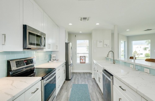 The interior of this contemporary beachside home is lovely, but the real star is the large, partially covered deck. Fix up your favorite drink, grab a snack, and get ready to spend hours sunning or lounging in the shade. Soak in the beautiful Gulf views from your beach house, or head straight for the beach to splash in the water. The sand and surf is just a stroll away!