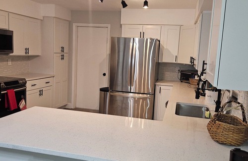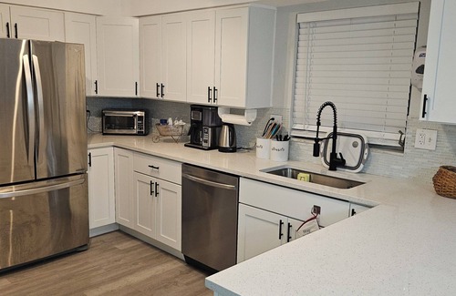 Discover the beauty of Merritt Island from this 3-bedroom house. Each bedroom offers a pleasant atmosphere with a twin, queen, or king bed for a fabulous night's sleep. The house features AC, heating, a hair dryer, and an iron for your convenience. With 2 bathrooms equipped with showers, guests can freshen up easily. Enjoy your time in Merritt Island at our soothing house.Full kitchen and newly renovated with upscale decorations.