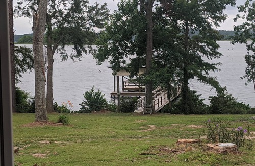 Relax and catch your limit at this Lakefront home located on Big Island. Conveniently located near Sealy's landing, Big Jim's Lakefront Restaurant, Dollar General, and Sunny's Grocery and Deli. Bring your boat to this large waterfront property with private dock including a covered boat slip. The spacious interior features a open floor plan, wood burning fireplace (with firewood), and a fully equipped kitchen. Three Bedrooms and 3 full baths with 3 Queen sized beds which will accommodate six. Washer & Dryer, microwave , coffee maker, and ironing board with iron on site.