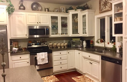 Because this is the owner's primary home, the kitchen is stocked with full spices and cookware for baking, including crock pots. There are two coffee makers, brew and single cups.