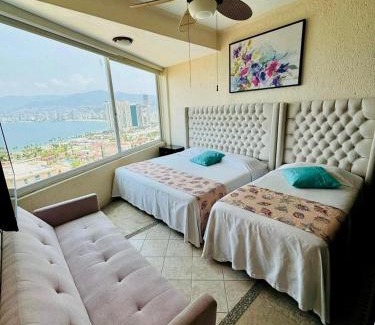 3 Atardeceres, Pet Friendly Vista al Mar en Brisas is a recently renovated vacation home in Acapulco where guests can make the most of the garden and bar. This property offers a rooftop pool, free Wifi, and free private parking. The accommodation offers a shared kitchen and full-day security for guests. Offering a terrace and sea views, the spacious vacation home includes 3 bedrooms, a living room, flat-screen TV, an equipped kitchen, and 5 bathrooms with a hot tub and a bath. Guests can take in the views of the mountain from the balcony, which also has outdoor furniture. The accommodation is non-smoking. Guests can also relax in the shared lounge area. Icacos Beach is 1.2 miles from the vacation home, while Acapulco Navy Historic Museum is 1.5 miles from the property. General Juan N Alvarez International Airport is 9.3 miles away.