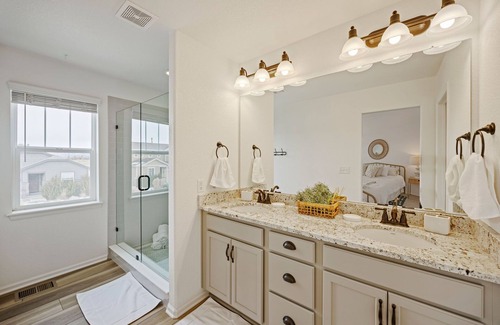 This 3-bedroom house is bright and beautiful. There are two living spaces, an office area, and an enclosed laundry room. Upgrades include large closets, granite countertops, oversized kitchen sink, pantry, luxury vinyl flooring, new carpet, gas fireplace, and three Smart TVs.