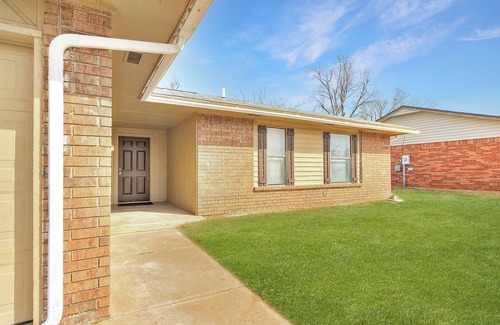 15 min from the airport. Get ready to relax in this 3-bedroom house in Mustang. This delightful property features 1 king bed, 1 queen bed, and 1 twin bed with trundle, perfect for a variety of guests. With amenities like AC, heating, high speed WiFi, and a washing machine and dryer, your stay will be cool and comfortable. Fully equipped kitchen. The 2 bathrooms come equipped with showers and hair dryers for your convenience. Experience the magic of Mustang at our house.