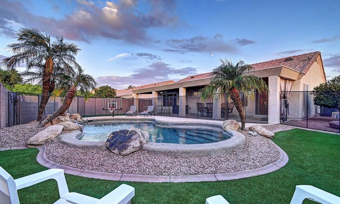 Relax and unwind in this stylish Glendale, AZ vacation rental! Enjoy the private pool, challenge friends to a game of ping pong or foosball, and catch your favorite shows on multiple TVs throughout the home. Perfect for families or groups, this getaway offers comfort, fun, and easy access to local attractions, shopping, and dining. Whether you're here for a game, a getaway, or just to soak up the sun, this spot has everything you need!