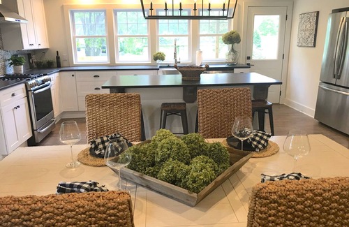 - Gourmet Kitchen: Enjoy cooking and dining in the well-appointed kitchen featuring honed granite countertops and a farmhouse sink, making it easy to prepare meals for your loved ones during your stay.